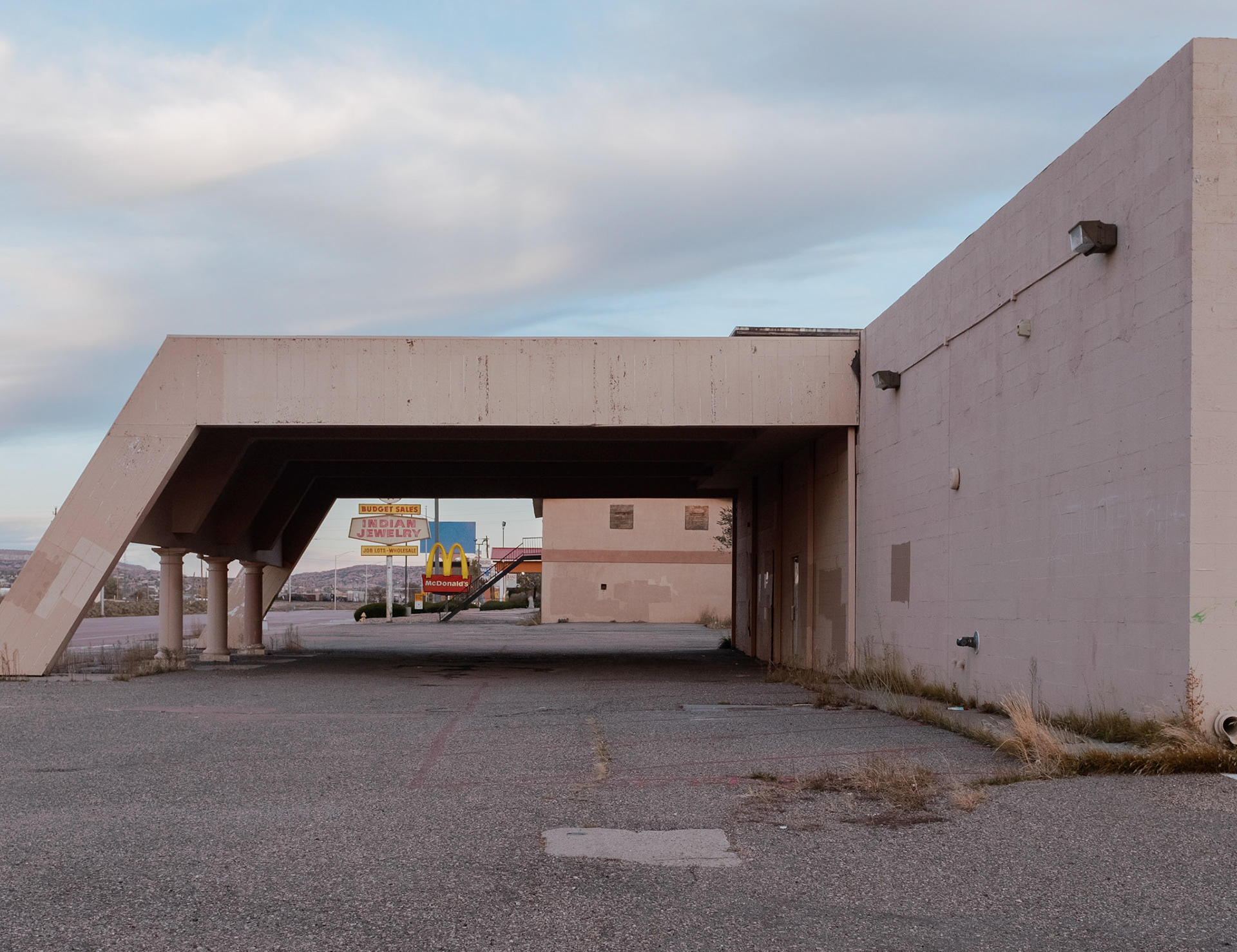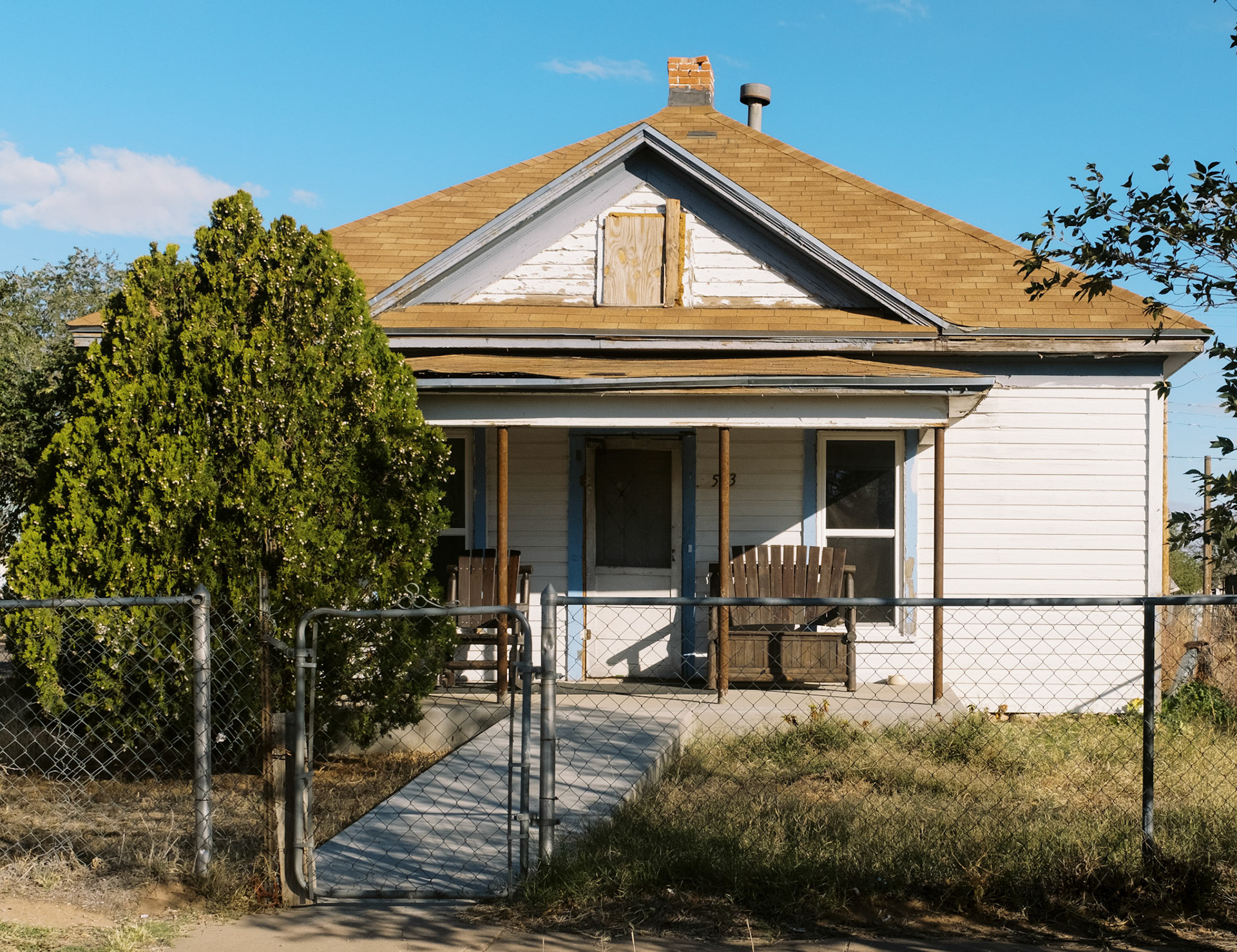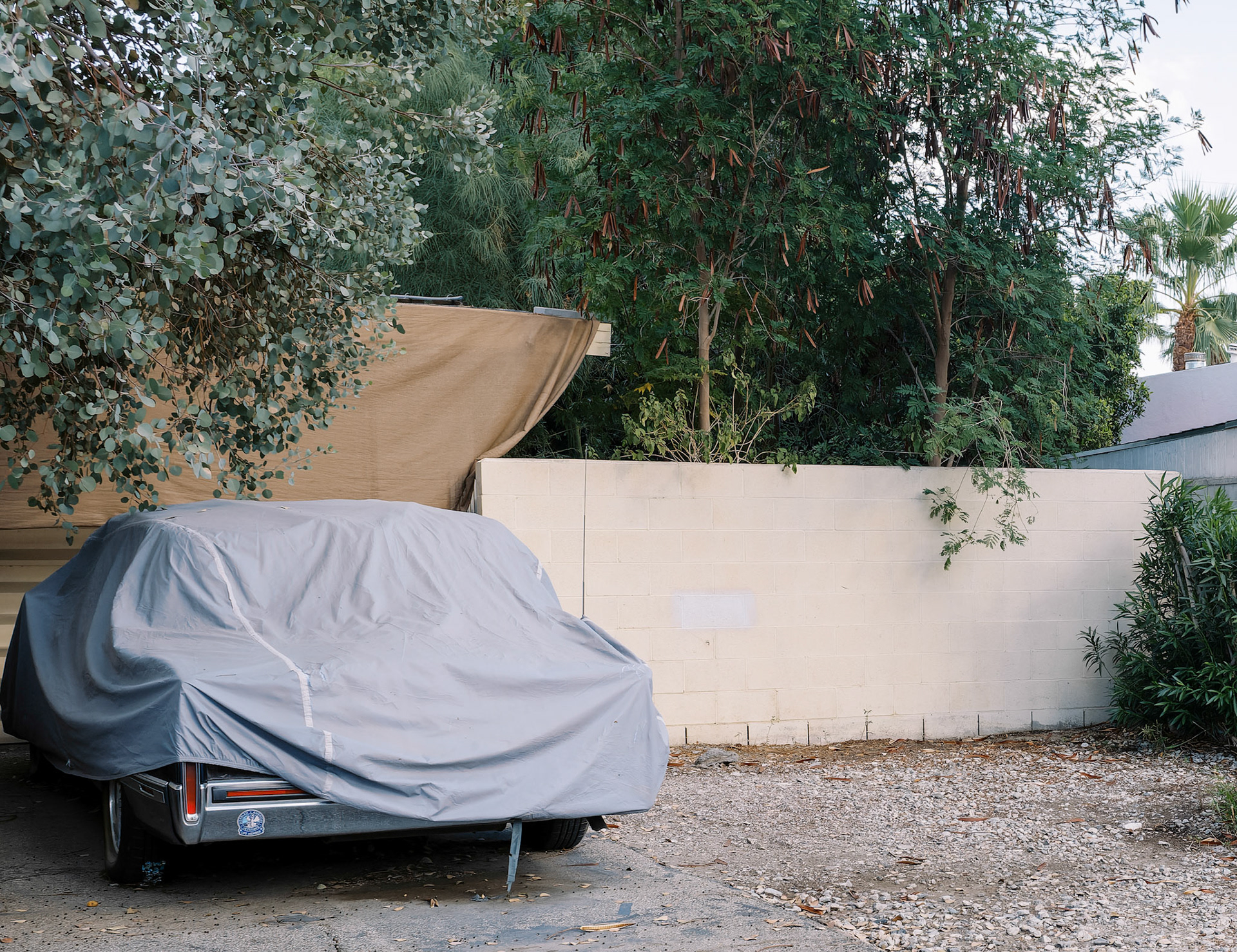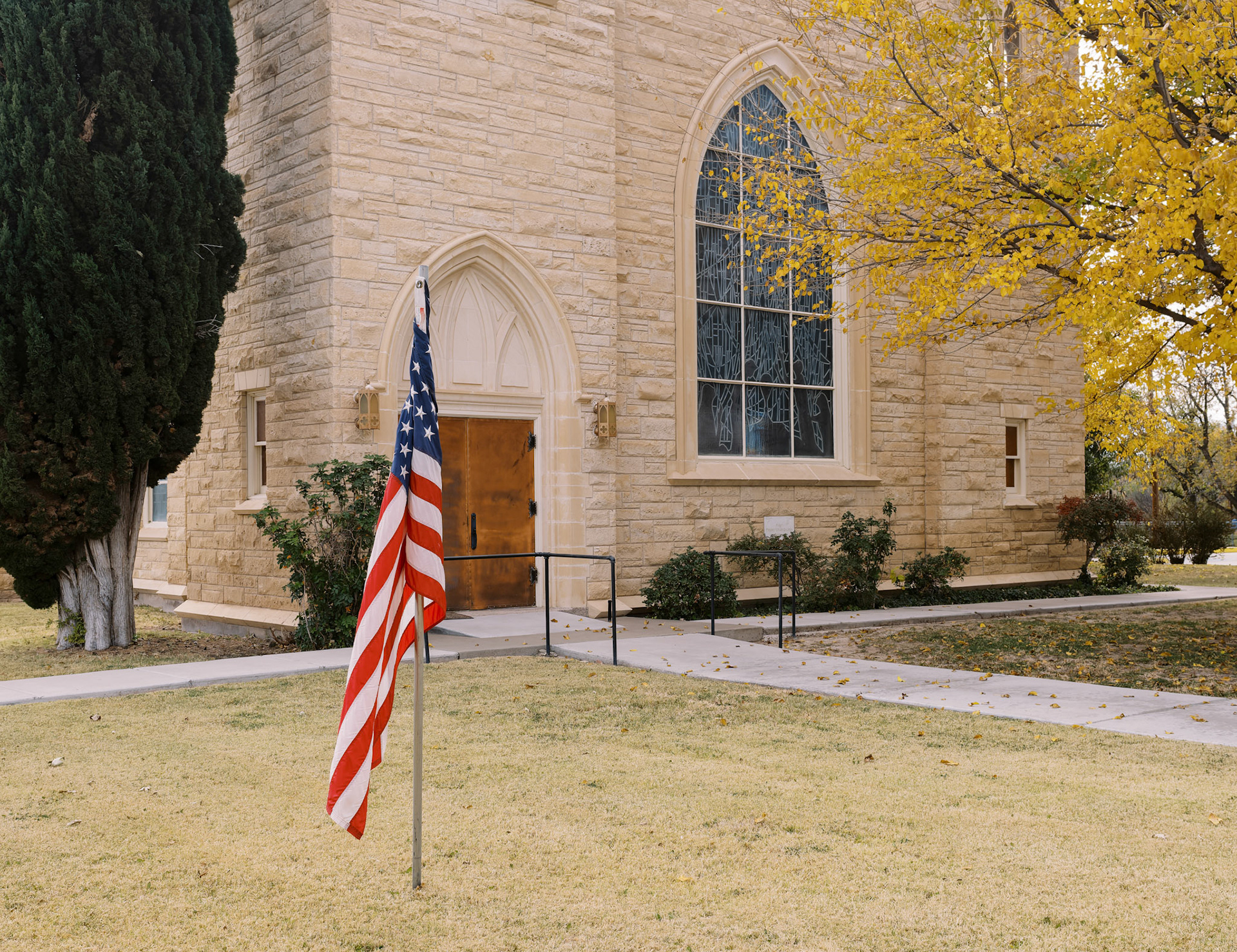 The Quiet Side is a photographic project developed on the margins of dominant narratives. It focuses on ordinary places - institutional buildings, houses, parking lots, motels, churches and parked RVs - observed from a distance, without direct human presence. The images depict spaces that are occupied, organized, sometimes abandoned, but always silent. Architecture becomes a language: façades, fences, tarps, numbers, flags - minimal signs of order and control. Nothing is spectacular. Everything remains in place. This work shows what persists once activity has withdrawn. The State, religion, domestic space, and intimacy continue to exist through their material forms, even when bodies have disappeared from the frame. The places seem to function on their own, sustained by a form of social and political inertia. The interiors - which appear sparingly - do not describe individual lives, but temporary uses: sleeping, waiting, passing through. The exterior spaces, meanwhile, form a geography of thresholds: gates, porches, passages, and intermediate zones where nothing is fully decided. Nature appears toward the end of the sequence, not as a refuge, but as a moment of breathing. Trees, wind, and birds introduce a suspension, a loosening of structure, without offering resolution. The Quiet Side does not document a specific territory. It observes a condition: that of a world that remains organized and maintained, sometimes fragile, where silence becomes an active form of presence.